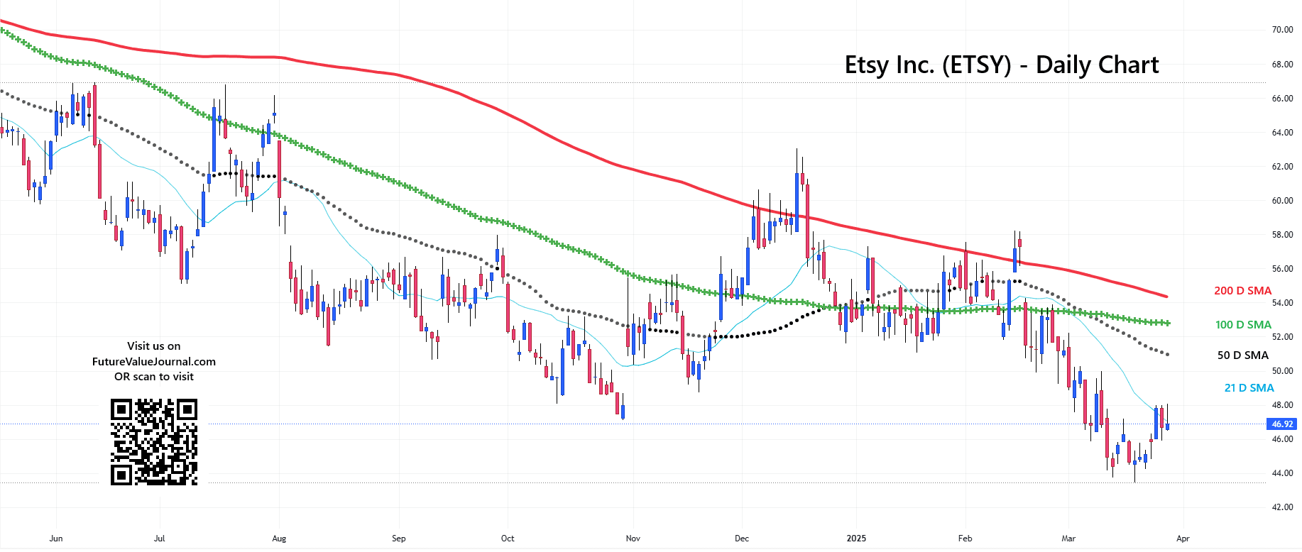 Based on the above predictions, Etsy Inc (NASDAQ: ETSY) stock could see decent recovery in the coming Based on the above predictions, Etsy Inc. (ETSY) stock could experience a decent recovery in the coming years. Starting from its current price of $51.08 (as of March 03, 2025), here’s a breakdown of the expected percentage increases for Etsy stock forecast each year leading up to 2029: